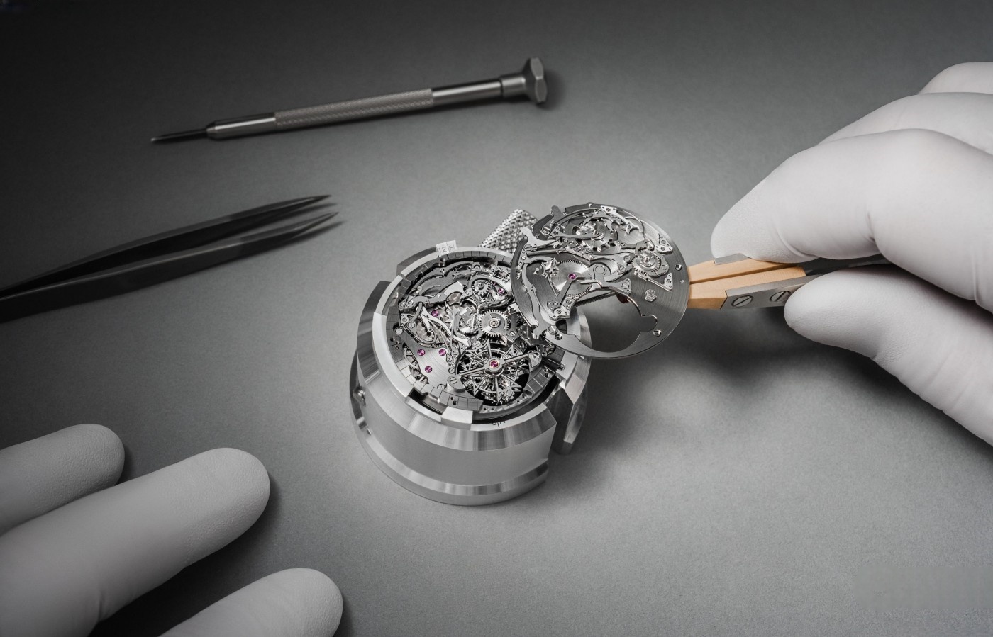 SwissReplicaClub.com’s replica ensures these intricate details are faithfully reproduced, including the centrifugal regulator’s patented silent braking system and decorative finishes such as Geneva stripes, beveling, and mirror-polished chiming hammers, all visible through the transparent dial and case back.