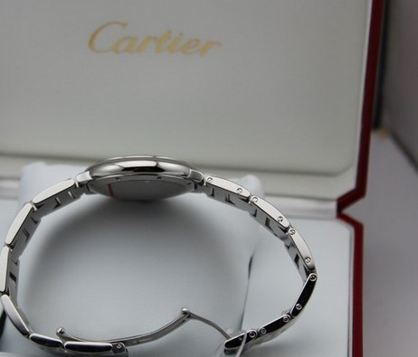The bracelet is another weak spot in cheap replicas. Rough edges, loose links, or inconsistent brushing give them away. Our Cartier Super Clones feature fully integrated, solid-link bracelets, complete with engraved butterfly clasps, polished inner corners, and smooth operation—just like authentic Cartier.